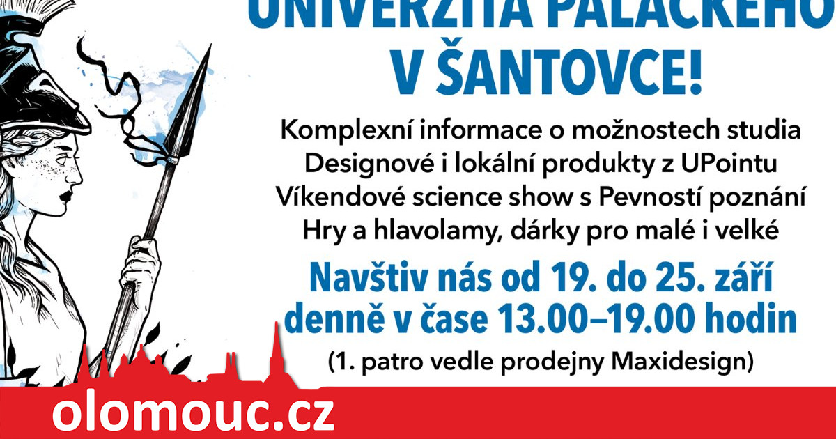 Na celý týden od 19. do 25. září se jedna z obchodních jednotek v olomouckém OC Šantovka přemění na informační centrum a obchod Univerzity Palackého v Olomouci (UP). Návštěvníci všech generací zde budou moci získat informace o možnostech studia na druhé nejstarší vysoké škole u nás, vyzkoušet si hlavolamy a hry nebo si prohlédnout desítky designových a lokálních výrobků z produkce UPointu. Program v prvním patře obchodního domu doplní i workshop s univerzitním vydavatelstvím nebo víkendová science show.