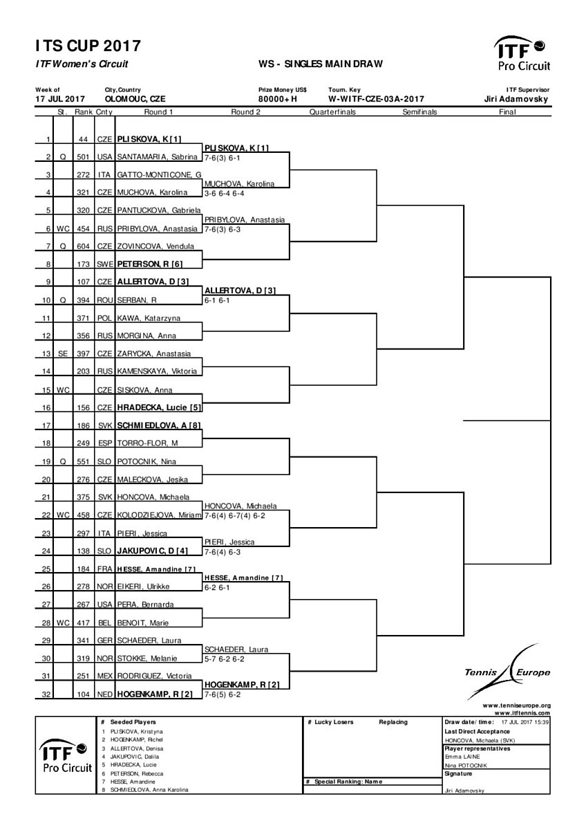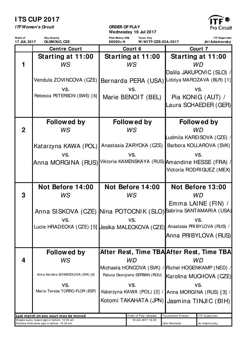 První kolo soutěže pokračuje dnes a na kurtu se mimo jiné objeví také Lucie Hradecká, která nastoupí proti domácí Anně Siskové. Vrcholem turnaje bude finálový zápas dvouhry v neděli 23.7. 2017 od 11 hodin, kterému bude předcházet dětské zábavné dopoledne.