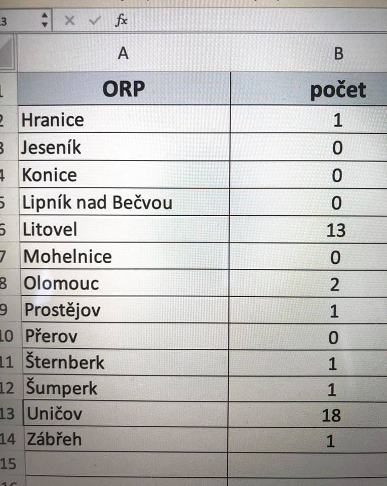 Údaje na webu ministerstva zdravotnictví v sobotu odpoledne stále ještě hovořily o 150 nakažených na území České republiky, u Olomouckého kraje bylo uvedeno číslo 7. Údaje však od rána nebyly aktualizovány. Premiér Andrej Babiš pak krátce po půl šesté uvedl, že nakažených je celkem 177, v Olomouckém kraji se skutečně jedná o 21 potvrzených případů.