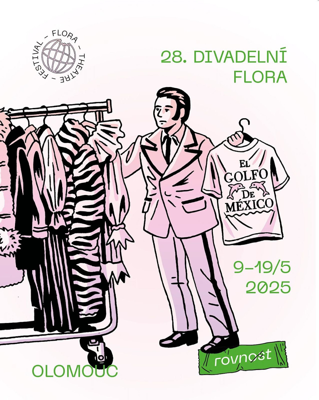 „Vizuální styl Divadelní Flory jsem pojal jako ilustrovaný příběh, který se odehrává kdesi na pomezí jeviště a zákulisí. V tomto fantaskním prostoru se potkávají profláklé divadelní archetypy s postavami z konkrétních inscenací festivalového programu. Zároveň jsem ale v souladu s tématem ročníku ROVNOST svými kresbami reagoval na aktuální společensko-politické problémy globálního i lokálního rozměru,“ vysvětluje Polák.