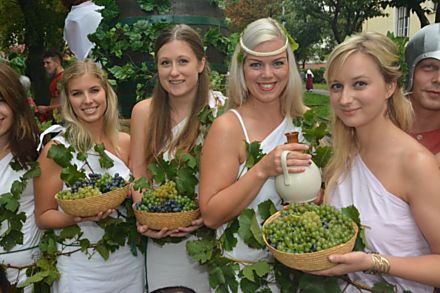 Znojemské vinobraní kromě kvalitního burčáku a výborného vína zdejších vinařů nabízí také bohatý kulturní i historický program. Celé město se o víkendu 11.-13. září promění na středověké město obehnané hradbami, které hlídají zbrojnoši. Základním pilířem historického programu je průvod krále Jana Lucemburského s chotí Eliškou Přemyslovnou a početnou družinou bubeníků, praporečníků, kejklířů, komediantů, pážat, dvorních dam i rytířů na koních. Kostýmovaný průvod více než 460 historických postav projde městskou památkovou rezervací dvakrát. V pátek večer projde za svitu pochodní a vyvrcholí ohňovou show na hlavní scéně v podání skupiny Pa-li-Tchi. Sobotní odpolední průvod pro změnu vygraduje na hlavním pódiu historickou scénou, zobrazující předávání práv konšelům, trestání nepoctivých vinařů a odsouzenců máčením v kašně. Historický program bude probíhat celou dobu na pěti scénách, kde budou k vidění dobová tržiště, vojenská ležení, rytířské turnaje a vystoupení skupin historického šermu, kejklířů, fakírů, mistrů ohně, kouzelníků, tanečníků a středověkých komediantů. Dalšího rozšíření o nové kostýmované postavy se dočká loňská, nutno říci úspěšná, novinka – ulička chudiny v Malé Mikulášské, která návštěvníky vtáhne do atmosféry středověké chudinské čtvrti. Potkat tu můžete kata, věštkyni, žebráky, mnichy, pěvce, ale i lehké děvy, hazardní hráče, šarlatány nebo zloděje. A těšit se můžete i na kulturní program. V pátek zahrají například Nebe, Xindl X, Wohnout, JAR či Chinaski, v sobotu pak Lenny, Pavel Šporcl nebo Blue Effect. Nejpodstatnější je však burčák a víno, které najdete všude kolem. Ochutnat můžete například vína Lahofer, Znovín nebo z Vinných sklepů Lechovice.