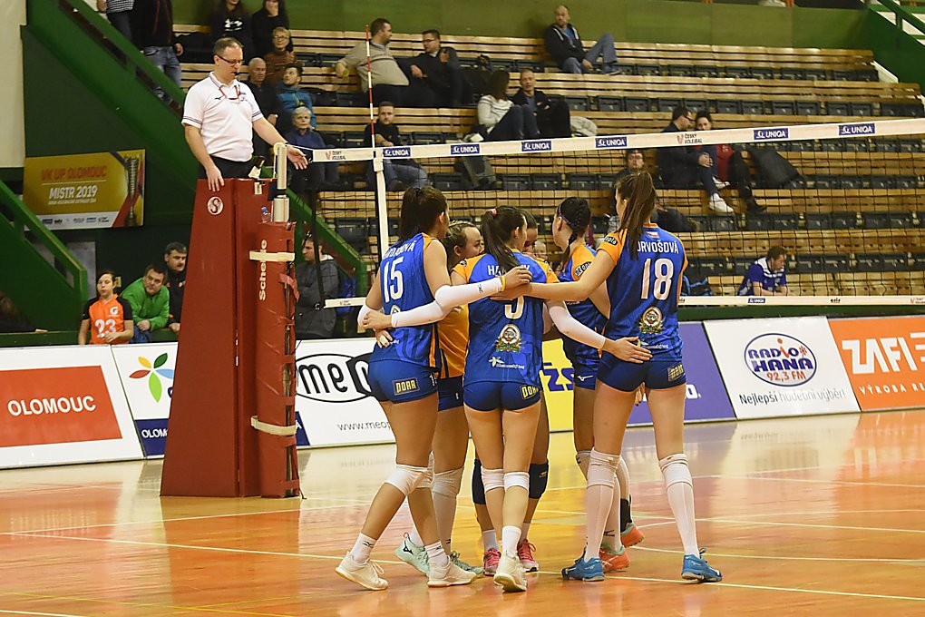Olomouc: Dudová, Hodanová, Bežandolská, Orvošová, Michalíková, Strušková, libera Stavinohová, Kulová. Střídaly: Handleyová, Burbeljuková, Kazačenková, Trnková.