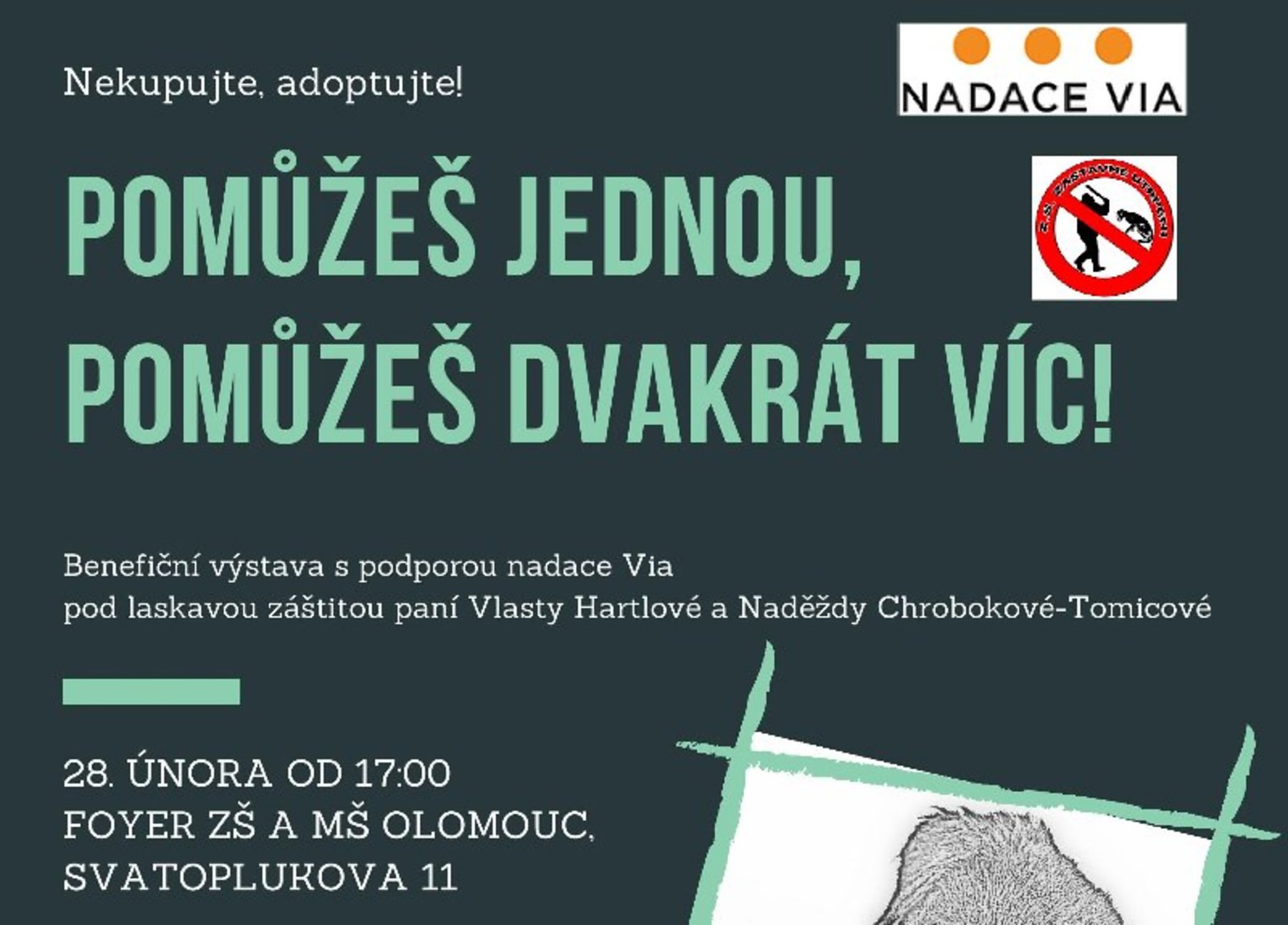 Tým devíti mladých žáků ZŠ a MŠ Olomouc, Svatoplukova 11, podpořených nadací Via uspořádá 28. února od 17:00 v prostorách školy prodejní výstavu s dobročinným záměrem.