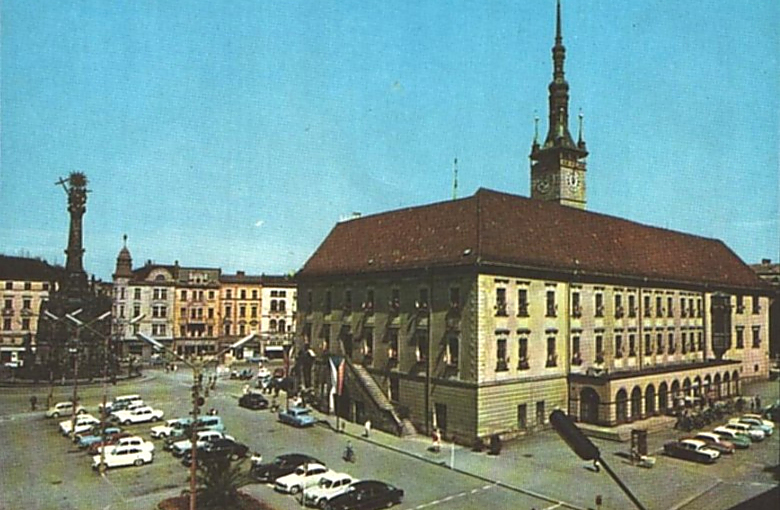 Prakticky tentýž pohled, jen o několik desítek let později. Rok 1965. V té době se ale už náměstí nějakou dobu jmenovalo náměstí Míru. Jeho název se měnil vícekrát. Horní náměstí přejmenovali nejprve na počest prvního prezidenta Masaryka, za války neslo jméno Adolfa Hitlera, pak se na čas vrátil Masaryk, aby ho po Únoru vystřídal Josif Stalin, později diktátorovo jméno vystřídalo náměstí Míru. K názvu Horní se Olomouc vrátila po roce 1989.
