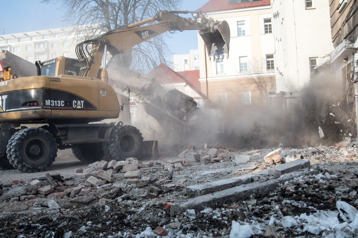 Aby se mohlo začít stavět, musí nejprve demoliční četa strhnout stávající přístavbu. Právě na jejím místě nová jídelna vyroste.