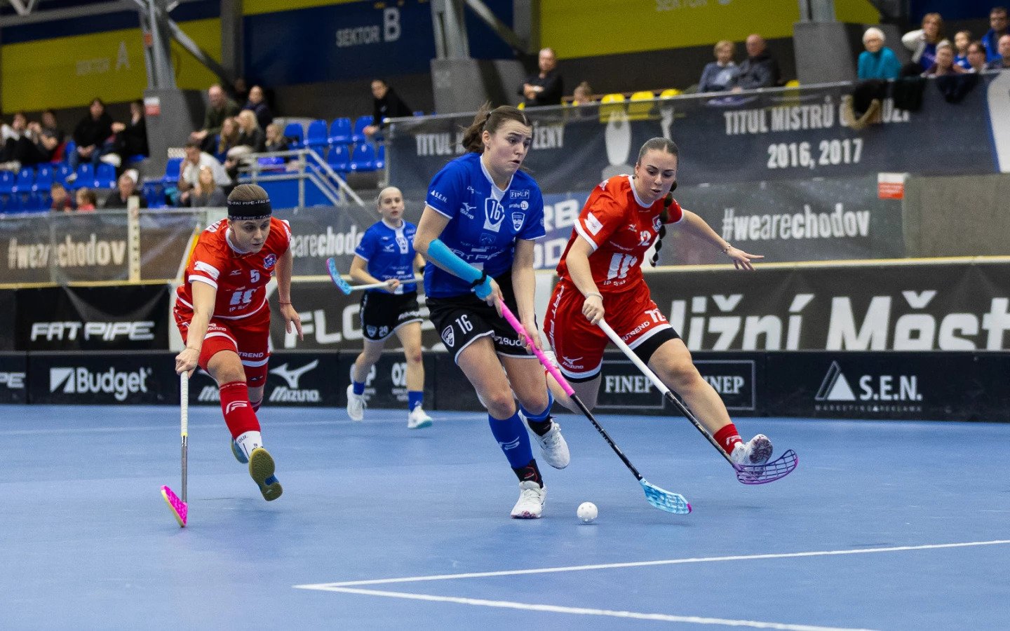 Olomoucké hráčky vstoupily do utkání na palubovce Chodova aktivně a od úvodu držely s domácím favoritem krok. První třetina nabídla vyrovnaný florbal se šancemi na obou stranách, přesto se jako první prosadily domácí hráčky, když v 5. minutě otevřela skóre Klára Pabiánová. Hanačky měly několik dobrých příležitostí k vyrovnání, brankářka Svrčková však svůj tým v úvodní části podržela.