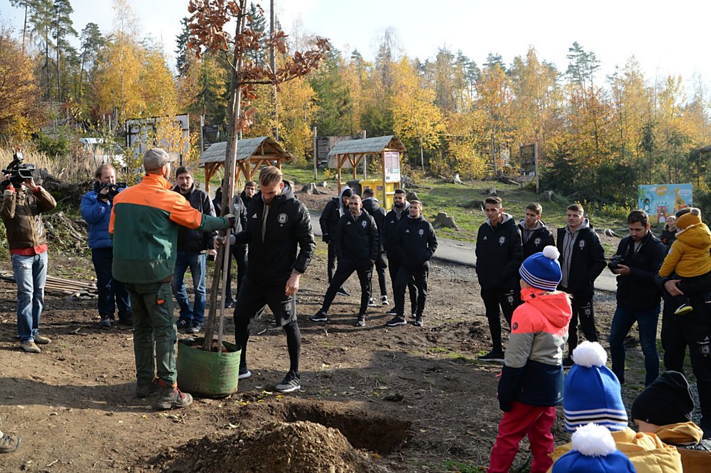 Zoo Olomouc má za sebou první výsadbu stromů. Na Svatém Kopečku pomáhali fotbalisté z SK Sigma