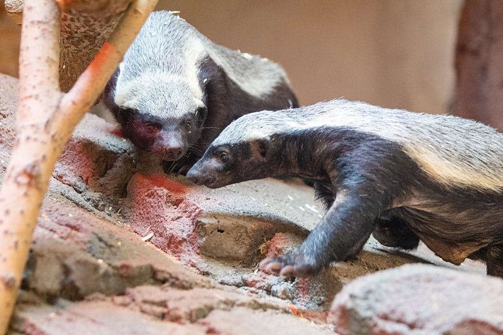 Medojedy chová zoo jen pár let. Loni v létě se tam narodila samička a před pár dny jí ze Sýrie přicestoval nápadník. "V přírodě se jedná o dosti samotářské tvory. Pokud se dva drží pospolu, jsou to většinou příbuzní. Proto jsme měli docela obavy, dávali jsme dohromady dvě úplně cizí zvířata. Ale padli si do oka od prvního dne!" říká mi zooložka Libuše Veselá. Kdy budou mít tihle medojedi mladé, je zatím ve hvězdách, úplně se totiž neví, kdy samice pohlavně dospívá. "Myslím, že příští rok bychom se ale z mláďat radovat mohli," dodává Veselá.