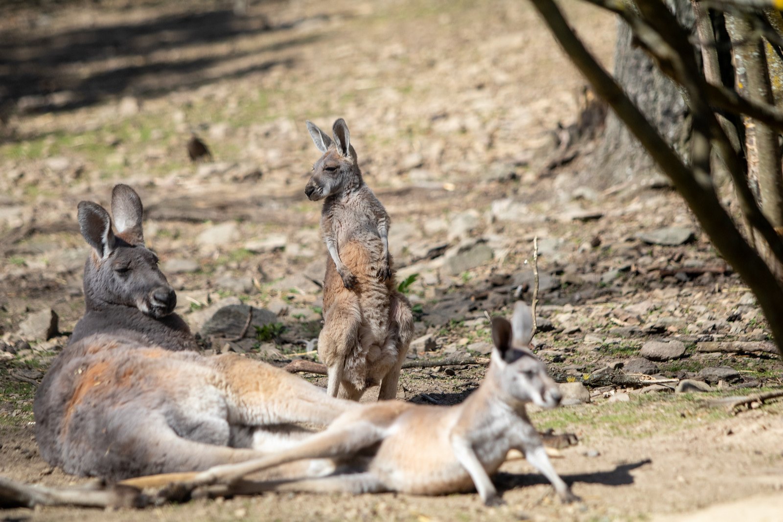 Mláďata přivedli na svět i klokani. Daří se jim výborně a užívají si teplých dnů. Zatím se ale drží poblíž rodičů...