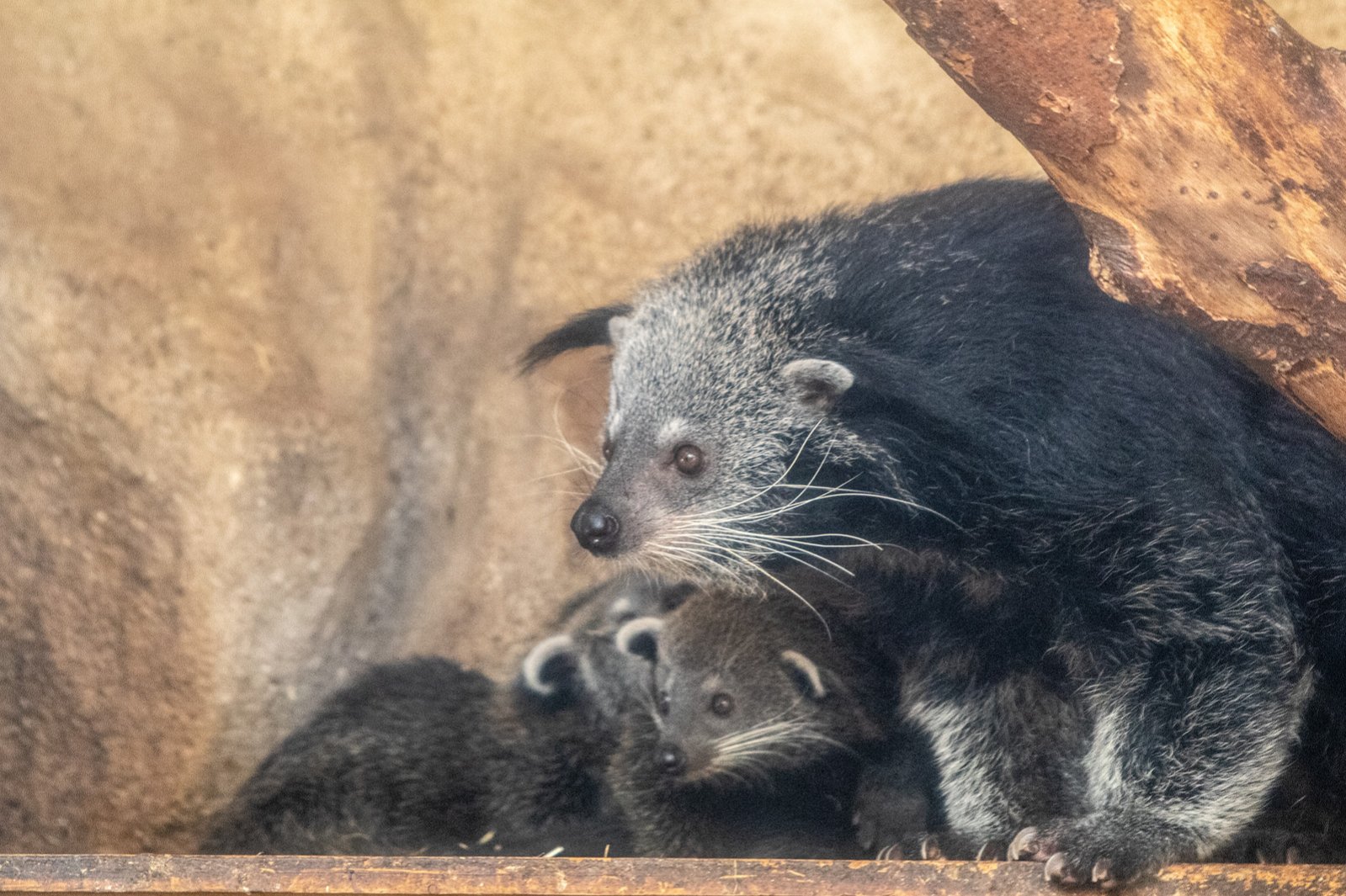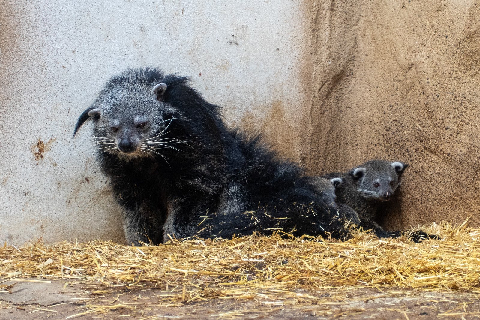 Rodina binturongů ukazuje, že se na mláďata dlouhých šestnáct let, jak tomu bývalo v dávné minulosti, čekat nebude. 10. května se narodila další dvě. Jubilejní desátý vrh současného chovného páru, který tvoří samec Gerry a samice Tereza, představuje tentokrát dvě samičky.