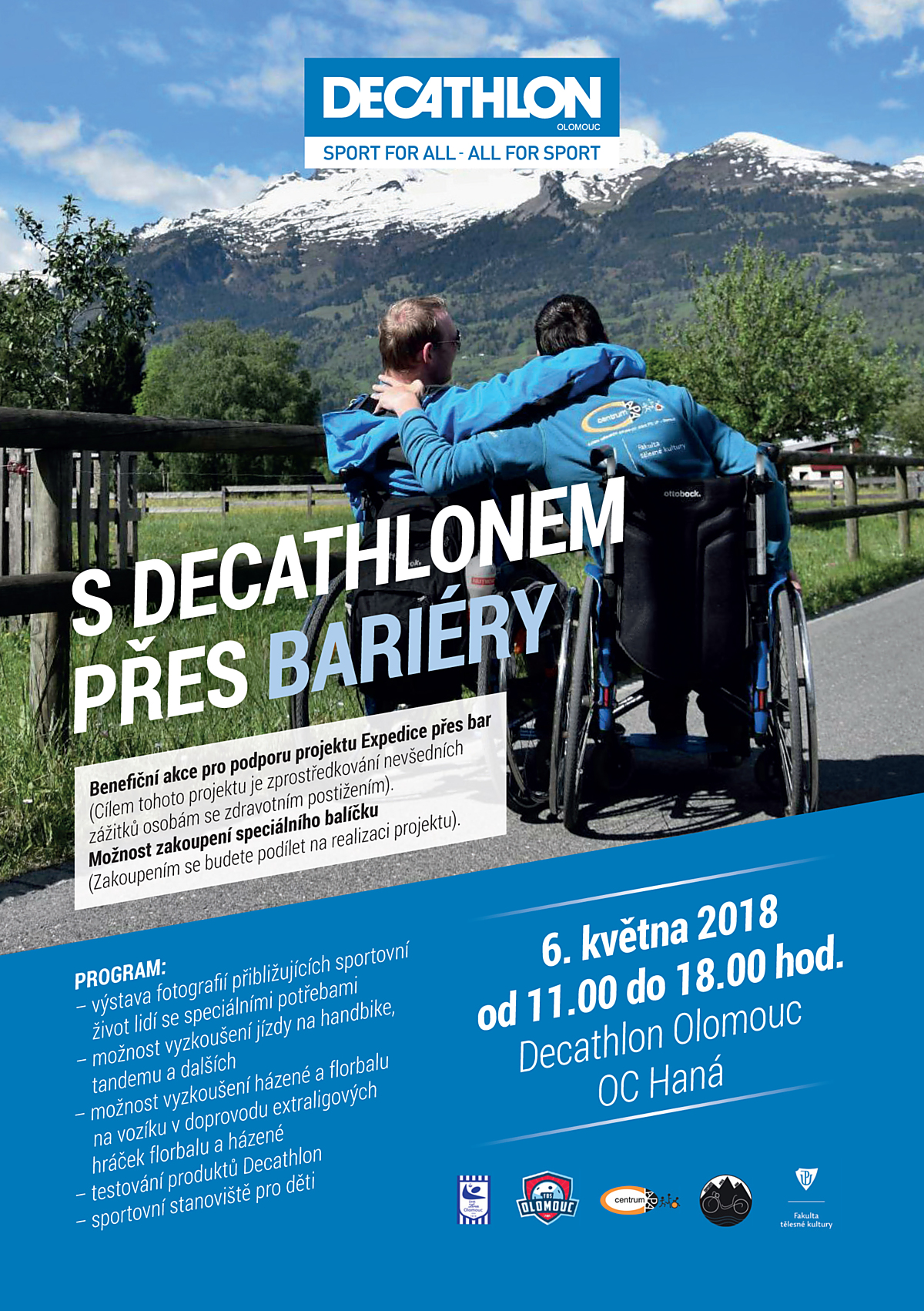 V neděli se A-tým DKH ZORA Olomouc představí v roli spolupořadatele na benefiční akci S decathlonem přes bariéry. Akce se uskuteční na podporu realizace projektu Expedice přes bar(iéry), který umožňuje vycestovat a zažít nevšední zážitky lidem s různým typem zdravotního postižení. V letošním ročníku takto pomůže 10 osobám s postižením.