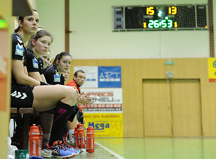 Střídačka Zory sleduje napínavé dění na palubovce.